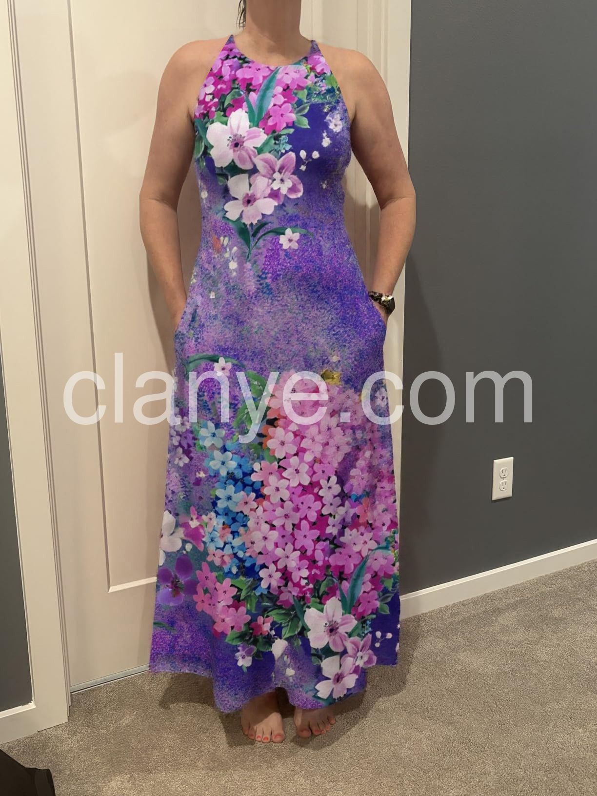 This dress is simply gorgeous! The floral pattern is so lively and bright, making me feel like springtime all year round. It's incredibly comfortable to wear and the fit is just right—not too tight, not too loose.