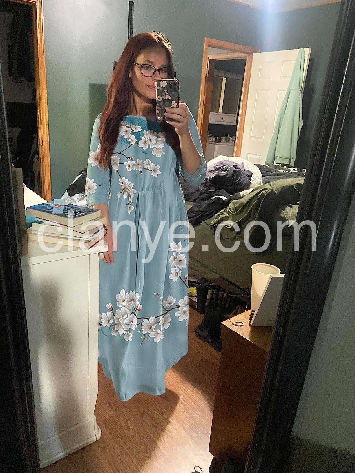 This dress is stunning! The light blue color with the floral design is perfect for a sunny day. It's comfortable and looks great both casually and for special occasions.