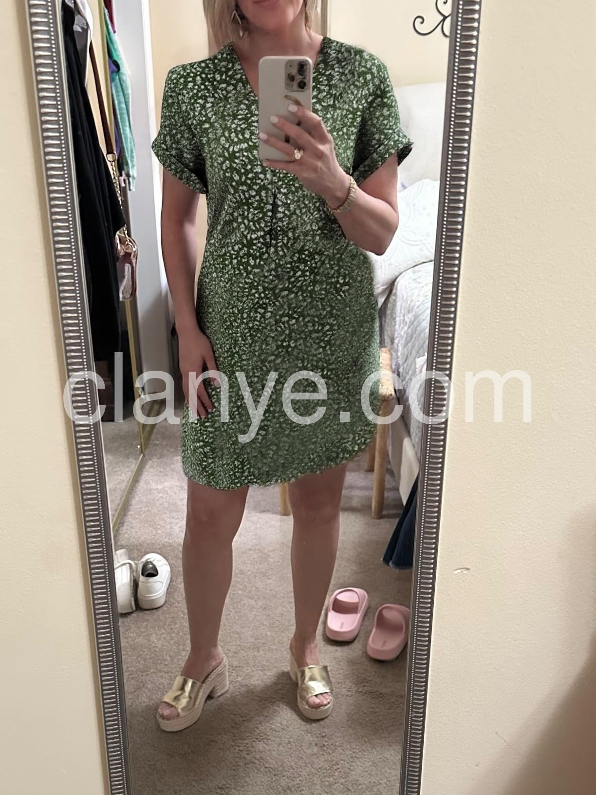 This Green Short Sleeve V-Neck Mini Dress is designed to enhance your style with its vibrant green color and flattering v-neckline. Made from high-quality materials, it offers comfort and durability for all-day wear. Perfect for any occasion, it effortlessly combines fashion and functionality. Elevate your wardrobe today with this versatile piece.