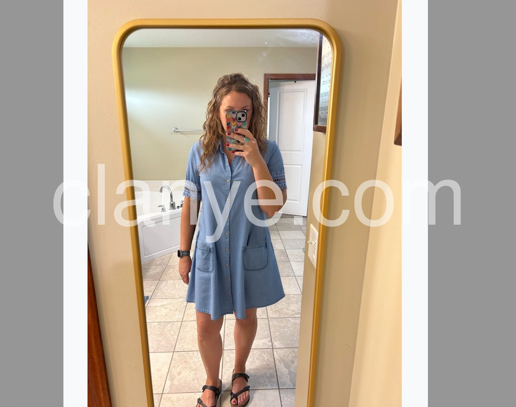 Super cute dress! I normally wear between a small and a medium, I went with the medium. It fits almost perfect, just a tiny bit big on the bust, but I am a D. Otherwise the dress is perfect and so cute! Perfect length, fabric is thick and seems like good quality. Suprise it has pockets!