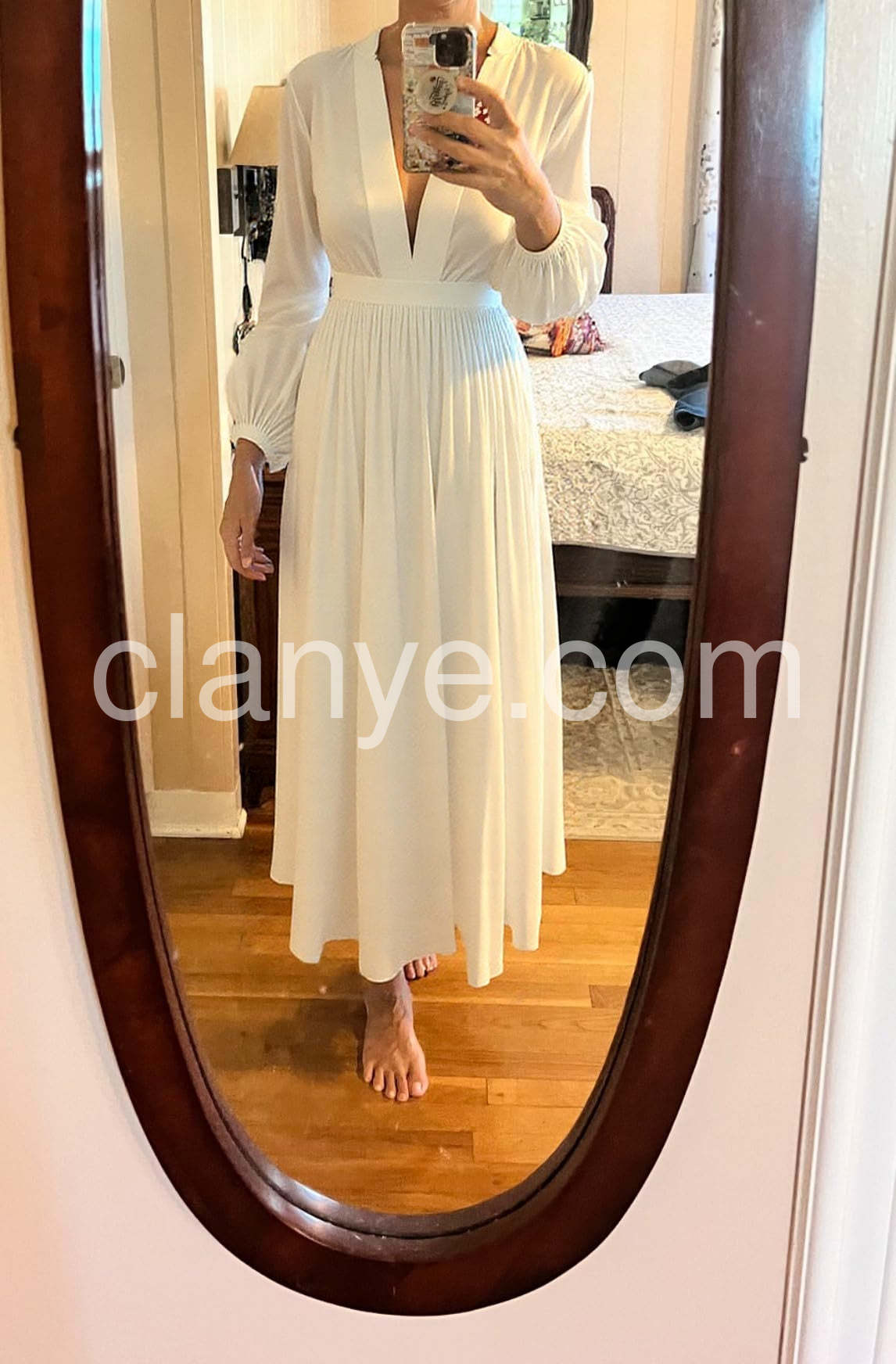 I feel stylish and comfortable in this gown for outdoor events. The elegant drape and timeless design make it an instant favorite!