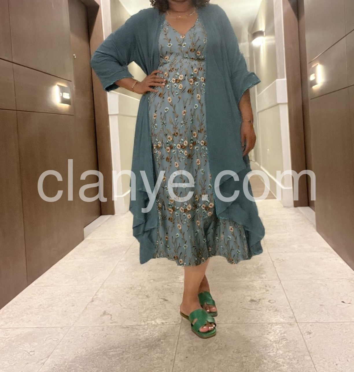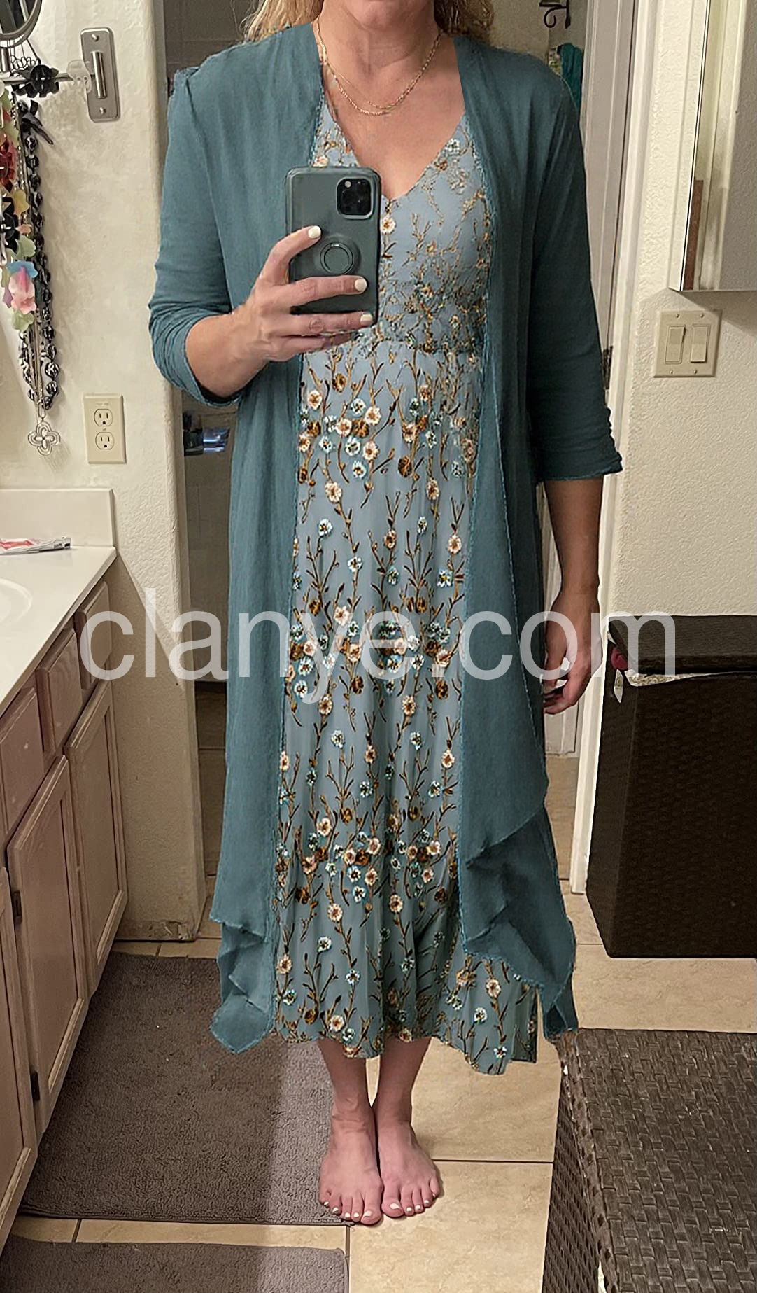 Youthful Ditsy Floral Print Maxi Dress With Thin Jacket Two Piece Outfits